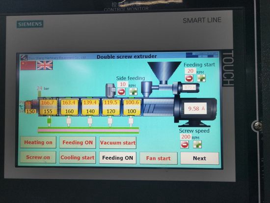 • Screw L/D: 40:1Control Mode: Siemens Touching Screen PLC Control