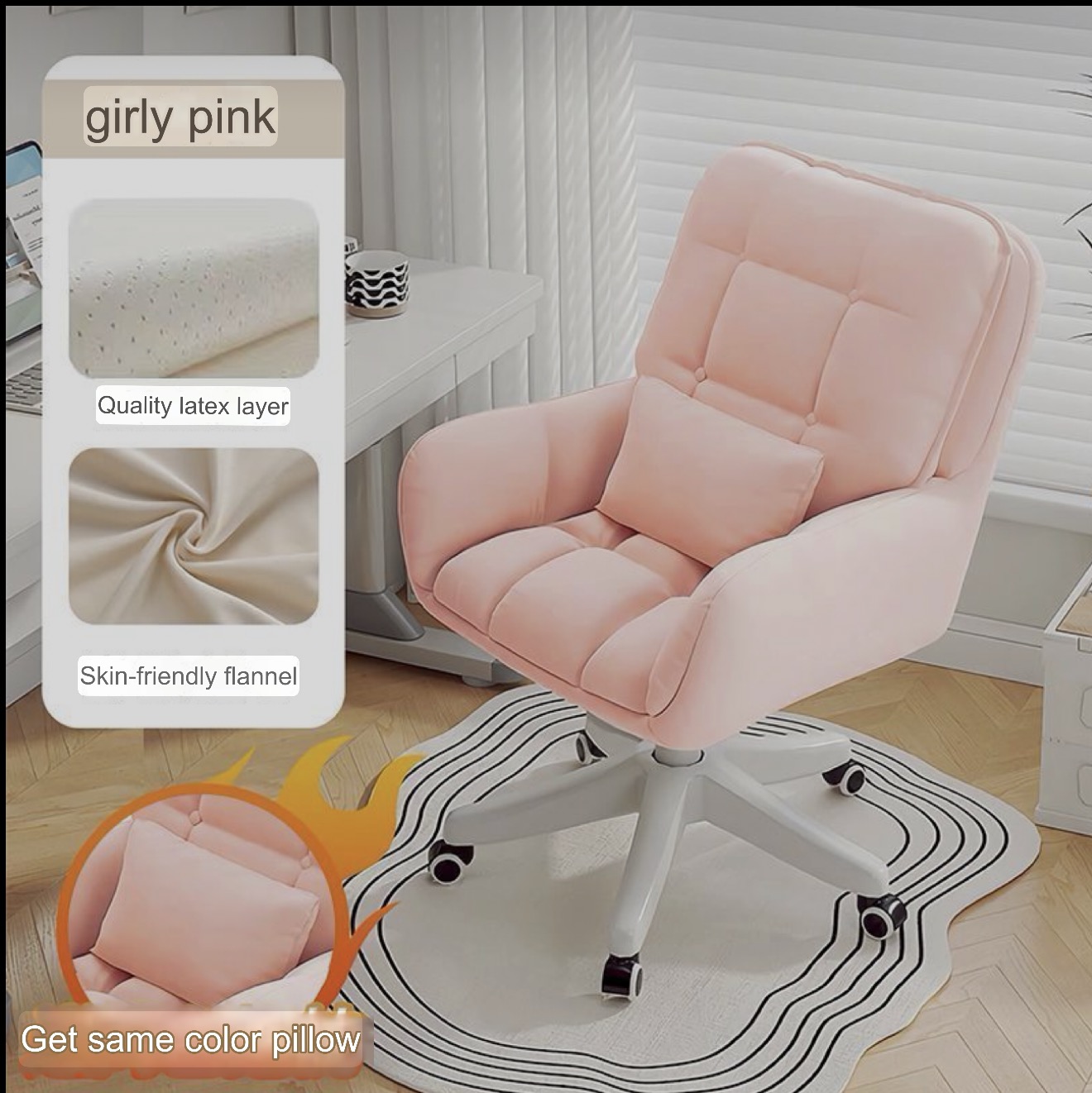 Office chair Girly Pink – Double-layer Backrest + Free Cushion √ [Latex Seat Cushion] High Load-bearing Capacity – High-quality Nylon Feet
