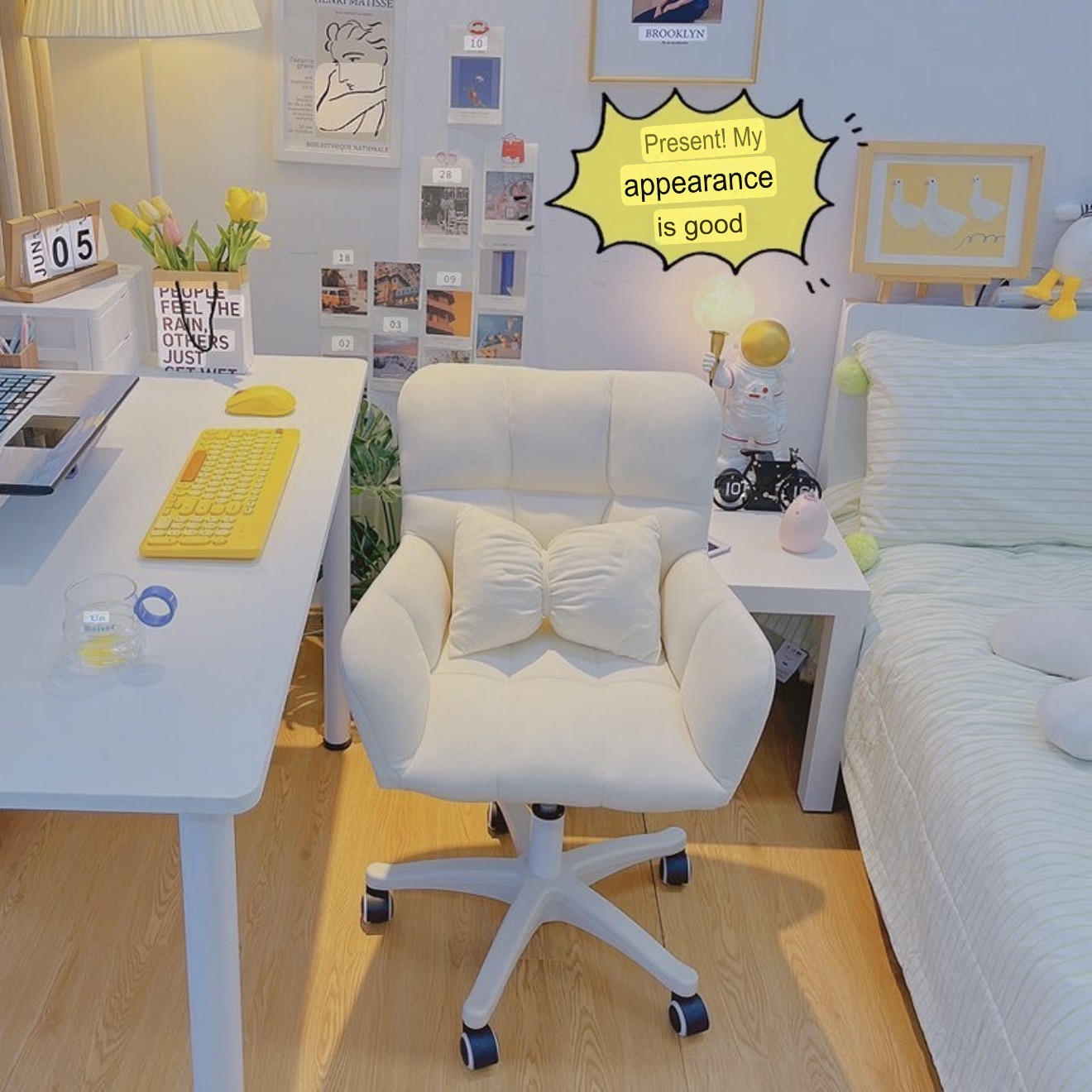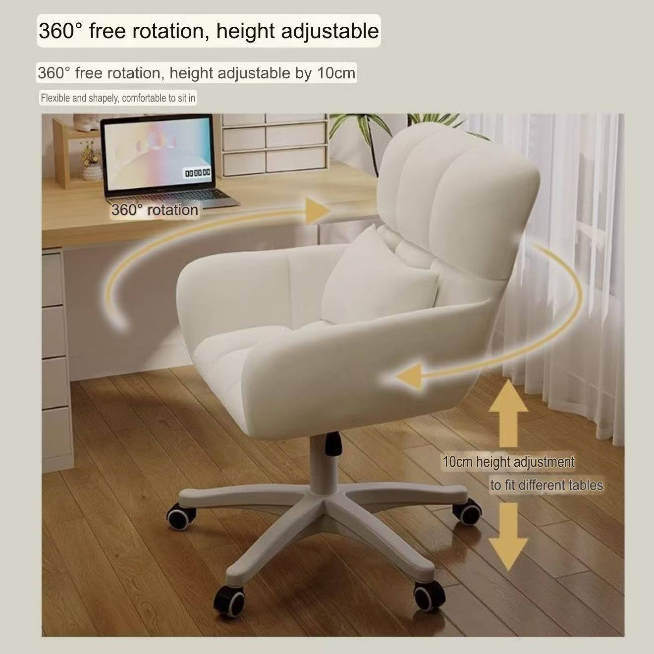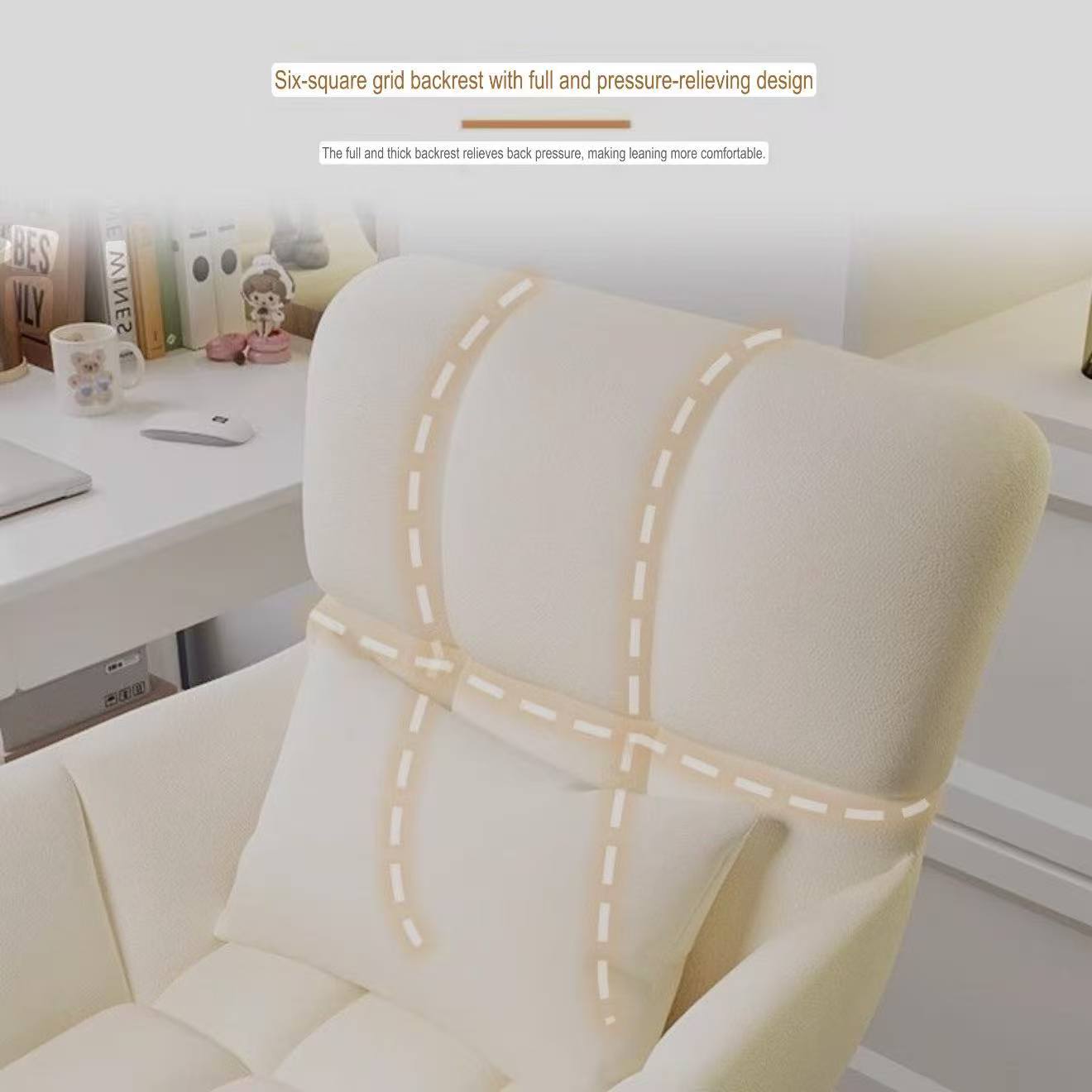 Office chair Off-white – Double-layer backrest + free throw pillow √ [Latex seat cushion] High load-bearing capacity – high-quality nylon Dragon’s feet