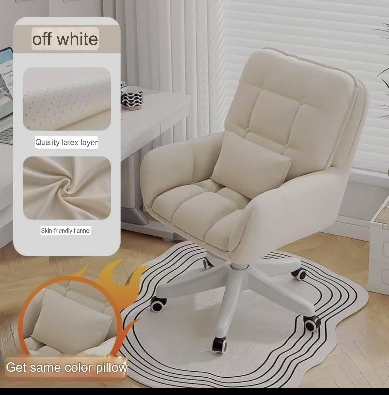 Be the first to review “Office chair Off-white – Double-layer backrest + free throw pillow √ [Latex seat cushion] High load-bearing capacity – high-quality nylon Dragon’s feet”
