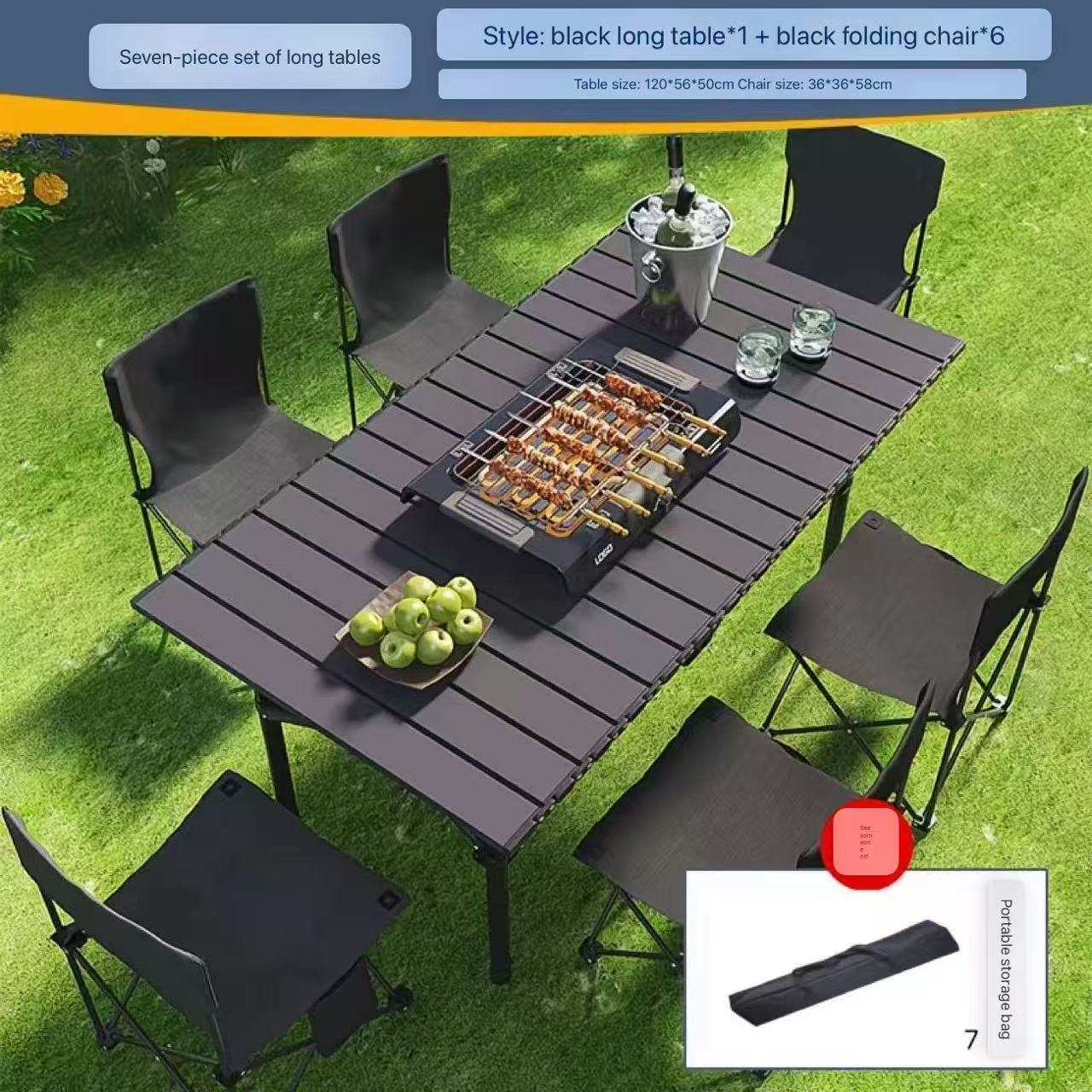 Model:.[Large folding chair*6] +120 ultra-long table